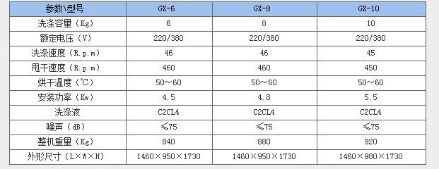 一、干洗機主要技術參數(Main Technical specifications)
