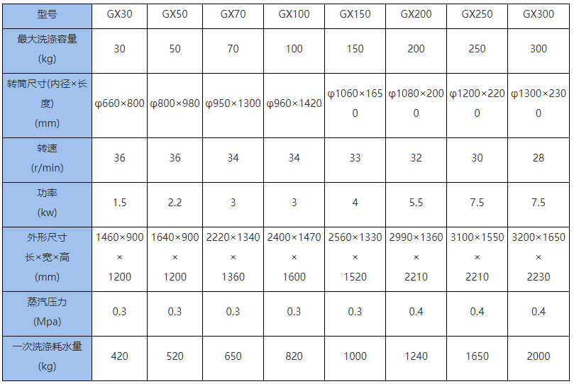 一、砂洗機主要技術參數(Main Technical specifications)